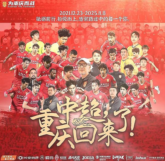 2023년부터 대한축구협회 부회장으로 선임돼 행정가로 활동을 이어온 장 감독은 지난 9월 급하게 소방수로 투입돼 충칭 지휘봉을 잡았다. 이와 동시에 3년 만에 다시 지도자 생활을 이어가게 됐다. 그에게 주어진 임무는 중국 갑급리그(CLO·2부)에 속한 충칭 퉁량룽을 중국 슈퍼리그(CSL·1부)로 승격시키는 것이었다.