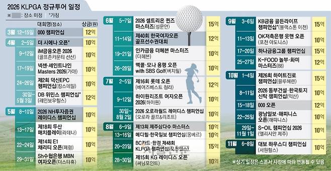새롭게 열리는 대회 외에 상금 증액이 확정된 대회도 있다. 4월 17~19일 가야컨트리클럽에서 열리는 넥센·세인트나인 마스터스 2026은 지난해 총상금 9억원에서 1억원이 증액돼 10억원으로 편성됐다.