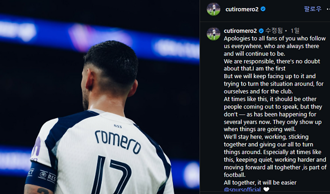경기 후 로메로는 자신의 SNS에 팬들에게 사과하는 글과 함께 의미심장한 메시지를 남겼다. 그는 "어디서든 우리를 따라와 주고 항상 곁에 있어 준 팬들에게 사과드린다"며 "책임은 분명 우리에게 있고, 그중에서도 내가 첫 번째"라고 밝혔다.