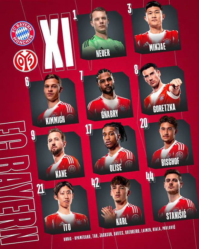 이날 경기는 '클럽 한-일전' 성격이 짙었다. 홈팀 뮌헨은 해리 케인을 톱에 세우고, 마이클 올리세, 레나르트 칼, 세르주 나브리로 공격 2선을 구성했다. 요주아 키미히와 레온 고레츠카가 중원을 꾸렸다. 요십 스타니시치, 이토 히로키, 김민재, 톰 비쇼프가 포백을 맡고, 마누엘 노이어가 골키퍼 장갑을 꼈다. 뱅상 콩파니 뮌헨 감독은 주중 챔피언스리그 일정에 따라 일부 포지션에 로테이션을 돌렸는데, 장기 부상을 털고 돌아온 이토와 김민재는 처음으로 호흡을 맞췄다.