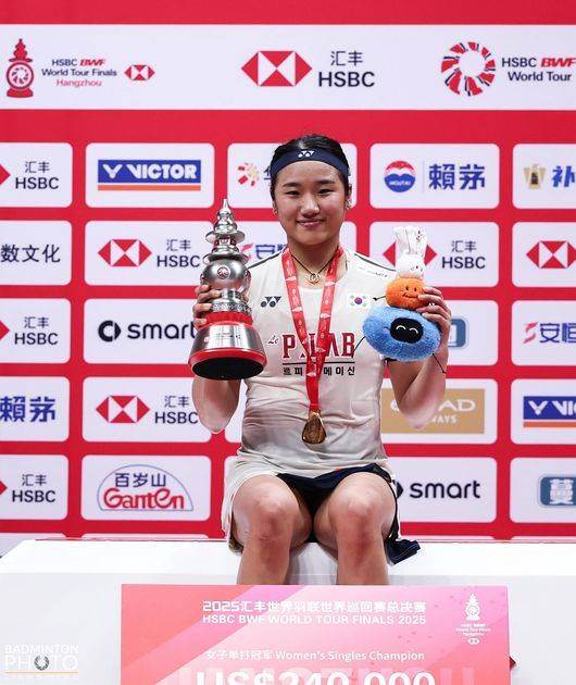 안세영은 지난해 '월드투어 파이널' 여자 단식 결승에서 왕즈이(25, 중국)를 2-1로 꺾고 시즌 11번째 우승을 차지, 한 시즌 최다 우승 기록과 타이를 이뤘다. 또 배드민턴 역사상 최초로 단일 시즌 상금 100만 달러 돌파라는 금자탑까지 쌓았다.