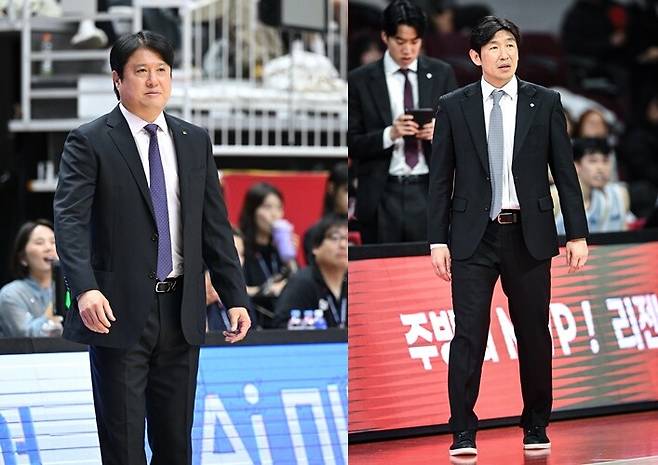 사진 설명 = 왼쪽부터 문경은 KT 감독-양동근 현대모비스 감독
