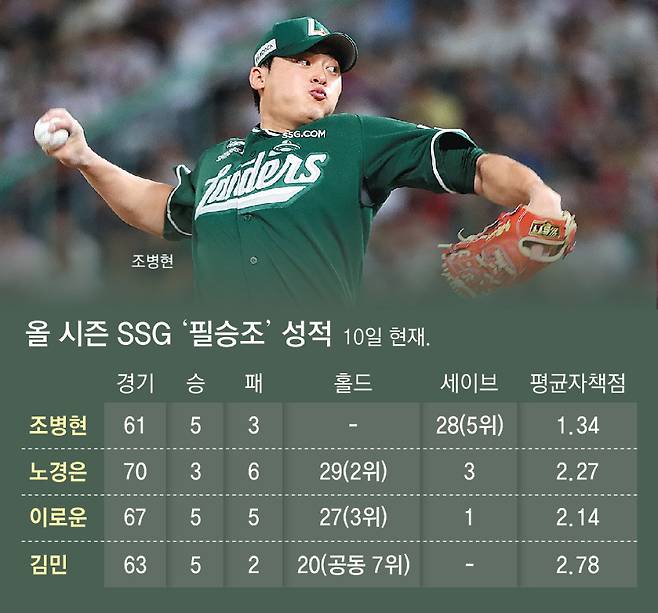 SSG 선전의 원동력으로는 ‘특급 마무리’ 조병현(23)을 필두로 한 불펜진의 활약을 꼽을 수 있다. SSG 불펜진은 10개 구단을 통틀어 가장 안정적이란 평가를 받는다.