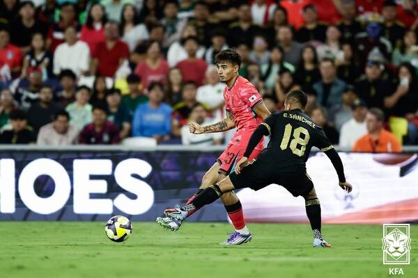 전반 22분 라울 히메네스(풀럼 FC)에게 선제골을 허용한 한국은 후반 20분과 30분 각각 손흥민(로스앤젤레스 FC)과 오현규(KRC 헹크)의 연속골로 역전에 성공했다. 그러나 후반 추가시간 산티아고 히메네스(AC 밀란)에게 극적인 동점골을 내주며 무승부에 만족해야 했다.