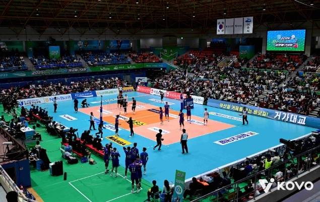 | ▲ 15일 열린 2025 여수·NH농협컵 프로배구대회 남자부 경기 |