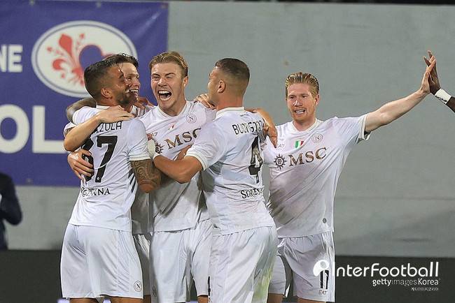 이른 시간 승기를 점했던 나폴리였다. 전반 6분 케빈 더 브라이너가 페널티킥으로 팀에 선제 득점을 안긴 것. 곧바로 추가 득점도 나왔다. 전반 14분 레오나르도 스피나촐라가 바깥 발로 밀어준 패스를 호일룬이 침착한 슈팅으로 득점을 만들어 냈다.
