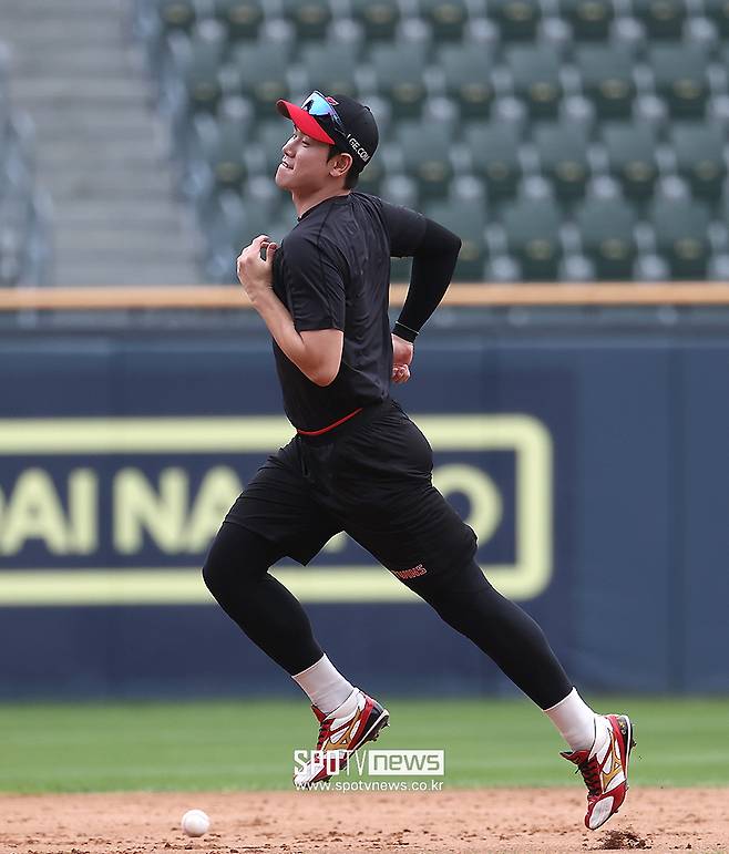 홍창기는 7일 잠실야구장에서 열리는 SSG와 경기에 앞서 주루 훈련을 하며 몸 상태를 점검했다. 내야를 전력 질주하는 그의 모습에서 복귀가 임박했음을 짐작할 수 있었다.