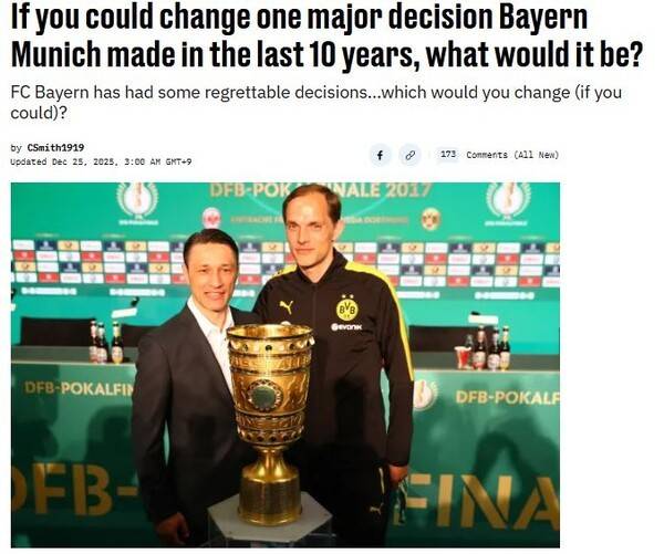 매체는 "뮌헨은 지난 10년 동안 수많은 결정을 내려왔고, 그중에는 분명 아쉬움이 남는 선택들도 존재했다"며 "만약 하나를 바꿀 수 있다면 어떤 결정을 되돌리고 싶은가?"라고 질문을 던졌다. 이어 니코 코바치 감독 선임, 헤나투 산체스 영입, 사디오 마네 영입, 마테이스 더 리흐트 방출, 율리안 나겔스만의 이른 경질 혹은 늦은 경질 등 다양한 사례를 언급했고, 그 가운데 '토마스 투헬 감독 선임' 역시 주요 항목으로 포함됐다.