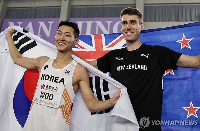 우상혁은 시즌 초반부터 강렬했다. 3월 중국 난징에서 열린 세계실내선수권에서 2m31을 넘으며 우승을 차지했고, 이 대회 2위였던 커는 우상혁을 목말 태우는 세리머니로 깊은 인상을 남겼다. 세계육상연맹은 “우상혁은 2022년 베오그라드 대회에 이어 개인 두 번째 세계실내선수권 우승을 거뒀다”며 “세계실내선수권 남자 높이뛰기에서 두 차례 이상 우승한 선수는 소토마요르, 홀름 이후 우상혁이 세 번째”라고 의미를 부여했다.