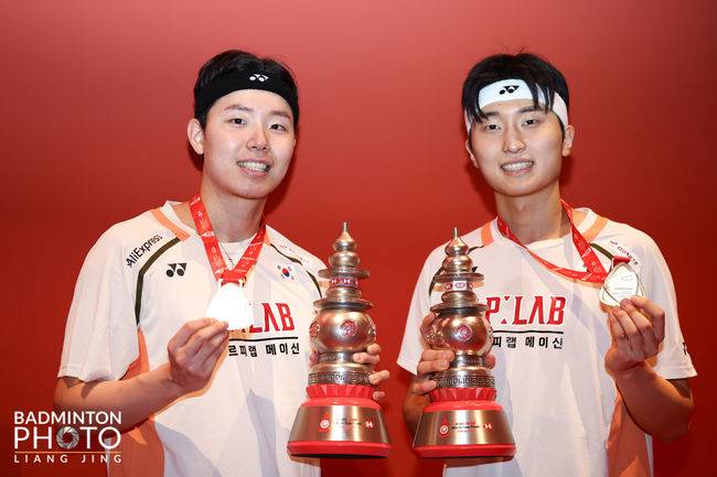 당시 김원호-서승재는 그 기세를 몰아 우승 트로피까지 들어 올렸다. 결승에서 40분 만에 량웨이컹-왕창(중국) 조를 2-0(21-18, 21-14)으로 누르며 2025시즌 11번째 우승을 추가했다. 이는 중국의 아이콘 리용보와 톈빙이가 1988년에 세운 10승 기록을 넘어서는 남자복식 역대 최다 우승 신기록이었다.