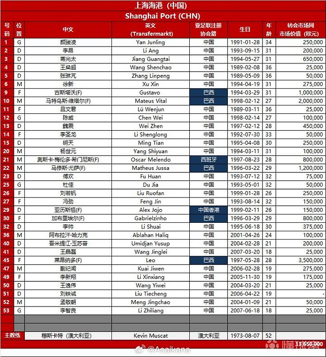 상하이 주장인 우레이는 아예 명단에 포함되지 않았다. 그는 지난 1월 무릎 수술을 한 뒤 한 차례 복귀했지만, 다시 부상이 재발한 상태다.