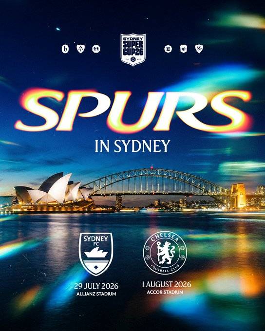 토트넘은 현지시간 기준 내년 7월 29일 알리안츠 스타디움에서 시드니 FC와 붙는다. 8월 1일에는 런던 라이벌 첼시와 아코르 스타디움에서 경기를 치를 예정이다.
