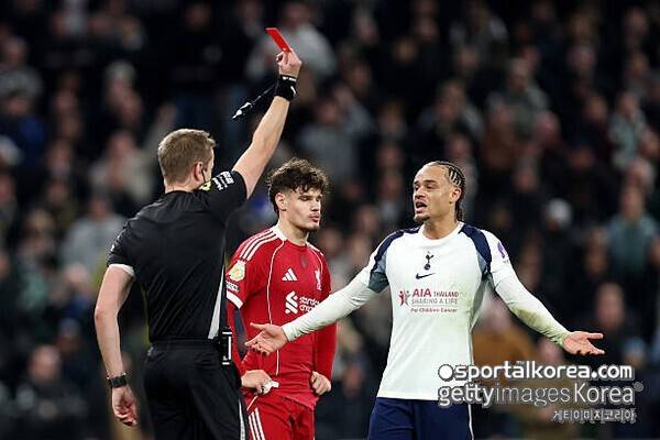 하지만 흐름은 한순간에 무너졌다. 전반 31분 사비 시몬스가 버질 반 다이크를 향해 스터드를 들고 태클을 시도했고 비디오 판독(VAR) 끝에 레드카드를 받고 퇴장당했다. 수적 열세에 몰린 토트넘은 이후 연달아 실점을 허용하며 0-2로 끌려갔다.