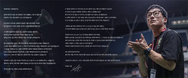지도자로서 아무것도 증명되지 않았던 저를 감독이라는 자리로 믿고 맡겨주신 구단의 선택은 제 축구 인생의 출발점이었습니다.