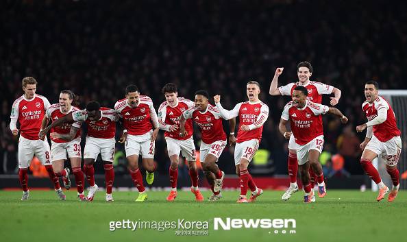 아스널은 12월 24일(이하 한국시간) 영국 런던 에미레이츠 스타디움에서 열린 크리스탈 팰리스와의 '2025-2026 잉글랜드 카라바오컵' 8강전 경기에서 1-1 무승부 후 승부차기로 승리했다.