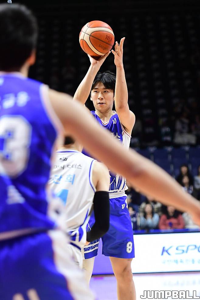 윤기찬은 이날 3점슛 3개 포함 14점 3리바운드를 기록했다. 데뷔 후 첫 두 자리 득점이다.