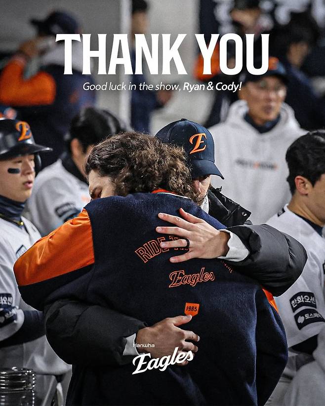 (엑스포츠뉴스 유준상 기자) 한화 이글스가 2025시즌 팀을 이끈 외국인 원투펀치 코디 폰세(토론토 블루제이스), 라이언 와이스(휴스턴 애스트로스)에게 고마움을 표현했다.