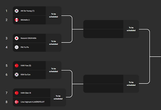 그래도 안세영은 미셸 리에 상대전적 8전 전승을 거두고 있어 16강 안착이 예상된다. 이 경우 일본 배드민턴의 베테랑 오쿠하라 노조미(30위)와 격돌이 유력하다. 전 세계 1위 출신인 오쿠하라는 최근 전일본선수권에서 건재함을 과시하며 기세를 올렸다. 안세영 입장에서는 한시도 마음을 놓을 수 없는 상황이다.