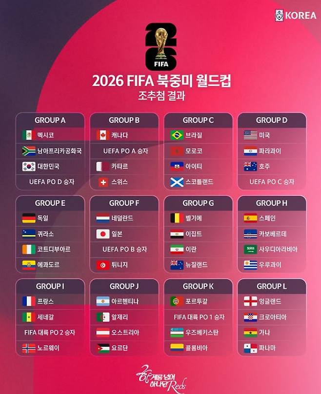 북중미월드컵에서 맞닥뜨릴 상대국들의 FIFA 랭킹도 미세한 변화가 있었다. 홍명보호는 개최국 멕시코, 아프리카의 남아프리카공화국, 유럽 플레이오프(PO) D승자와 함께 A조에 편성됐다.