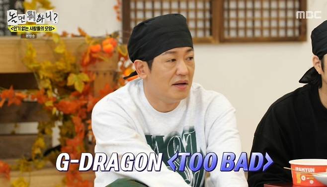 멤버들은 팬미팅에서 부를 개인 무대를 고민했다. 유재석은 허성태에게 지드래곤(GD)의 '투 배드'를 해보겠냐고 제안했다. 당시 큰 화제가 된 에스파 카리나와의 컬래버레이션. 이에 하하는 "형은 채리나 누나랑 해라"라고 했고, 유재석은 "누나도 바쁘다. 아니면 팀 내에서 해도 된다"라고 밝혔다.