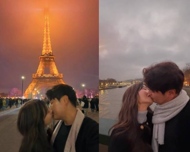 공개된 사진 속 추신수, 하원미 부부는 파리를 여행 중인 모습이다. 두 사람은 에펠탑을 배경으로 서로를 껴안은 채 낭만적인 분위기가 넘치는 키스를 하고 있다.