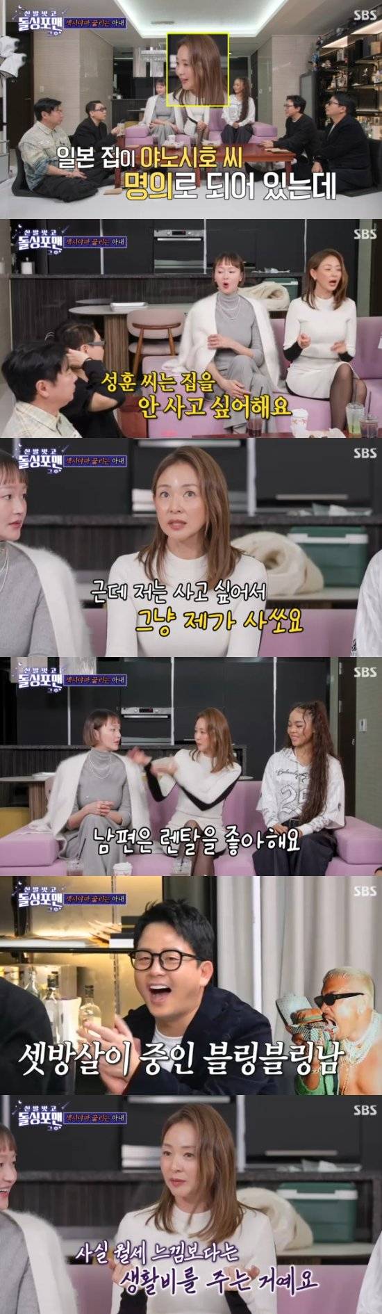 이상민은 "일본 집에 야노시호 씨의 명의로 되어있는데, 공동명의로 할 생각은 없느냐"고 궁금해했고, 야노시호는 "성훈 씨는 집을 안 사고 싶어한다. 그런데 저는 사고 싶어서 제가 집을 산거다. 성훈 씨는 렌탈을 좋아해서 저한테 월세를 낸다. 사실 월세보다는 생활비 느낌"이라고 전해 눈길을 끌었다.