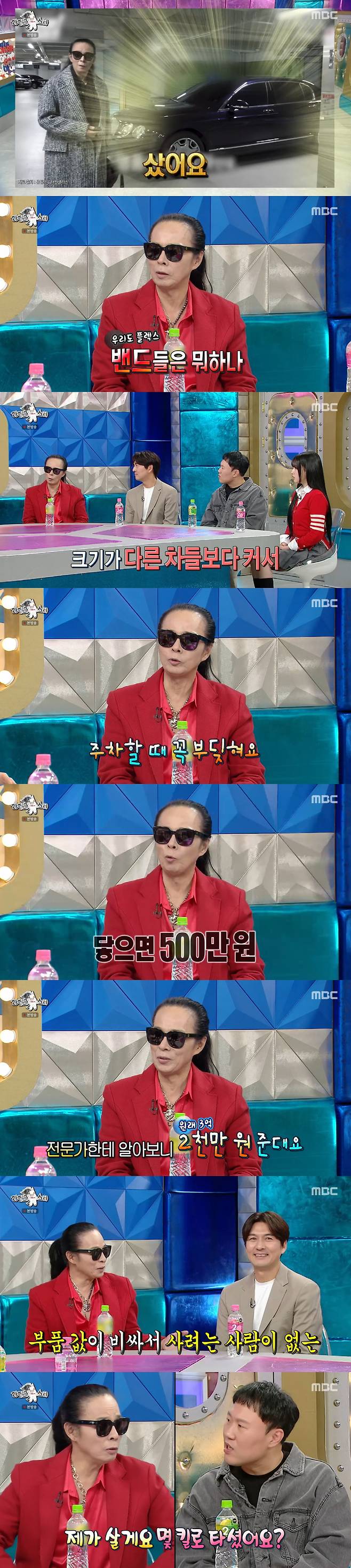 김태원은 "다른 차들보다 크다. 주차할 때 꼭 부딪힌다. 닿으면 500만원이다"면서 "팔라고 전문가한테 물어봤더니 2천만원 준다더라. 부속값이 비싸니까 사람들이 안 사는거다"며 웃픈 미소를 지었다.