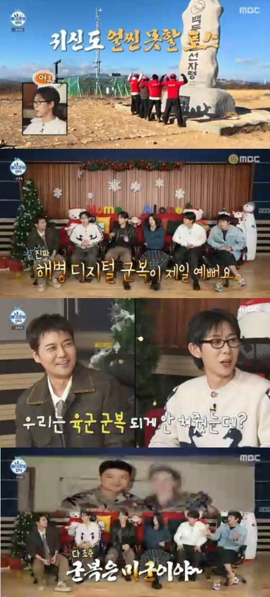 기안84는 자신의 경우 육군 군복을 안 쳐준다면서 의경 전투복이 각이 산다고 말했다. '카투사 출신'인 전현무는 "군복은 미군이다"라고 말해 웃음을 자아냈다.