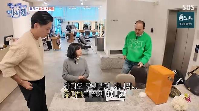 이후 라디오 출근을 앞두고 최화정이 "오랜만에 라디오 가니까 꽃을 가져갈까 생각한다"라며 고민했다. 이서진이 "꽃은 하루 지나면 쓰레기다"라고 하자, 최화정은 "그래서 너 우리 집 왔을 때 꽃 사 왔어?"라고 되물어 웃음을 자아냈다.