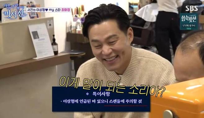 최화정의 특이사항을 보던 이서진은 '이상형에 언급된 바 있으니 스캔들에 유의하라'는 항목을 보고는 "이게 말이 되는 소리야? 10년째 (이상형이라고) 떠들고 있어도 스캔들 난 적이 없는데"라며 황당해했다.