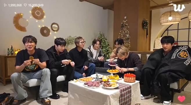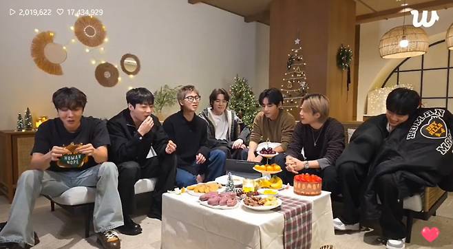 21일 방탄소년단 멤버 RM, 진, 슈가, 제이홉, 지민, 뷔, 정국은 팬 플랫폼 '위버스'를 통해 완전체 라이브 방송을 진행했다. 이날 방송에서 멤버들은 근황부터 향후 컴백 계획까지 다양한 이야기를 나누며 팬들과 소통했다.