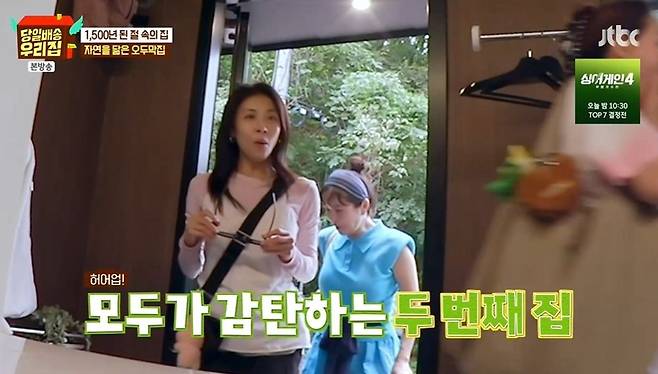 23일 방송된 JTBC '당일배송 우리집' 2회에서는 김성령, 장영란, 하지원, 가비가 1,500년 된 절 속ㅇ의 집에서 하룻밤을 보냈다.