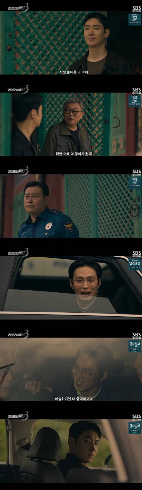 27일 방송된 SBS 금토드라마 '모범택시3' 12회에서는 사기꾼들과 접점이 있는 삼흥도라는 섬에 들어간 김도기(이제훈 분), 장성철(김의성)의 모습이 그려졌다.