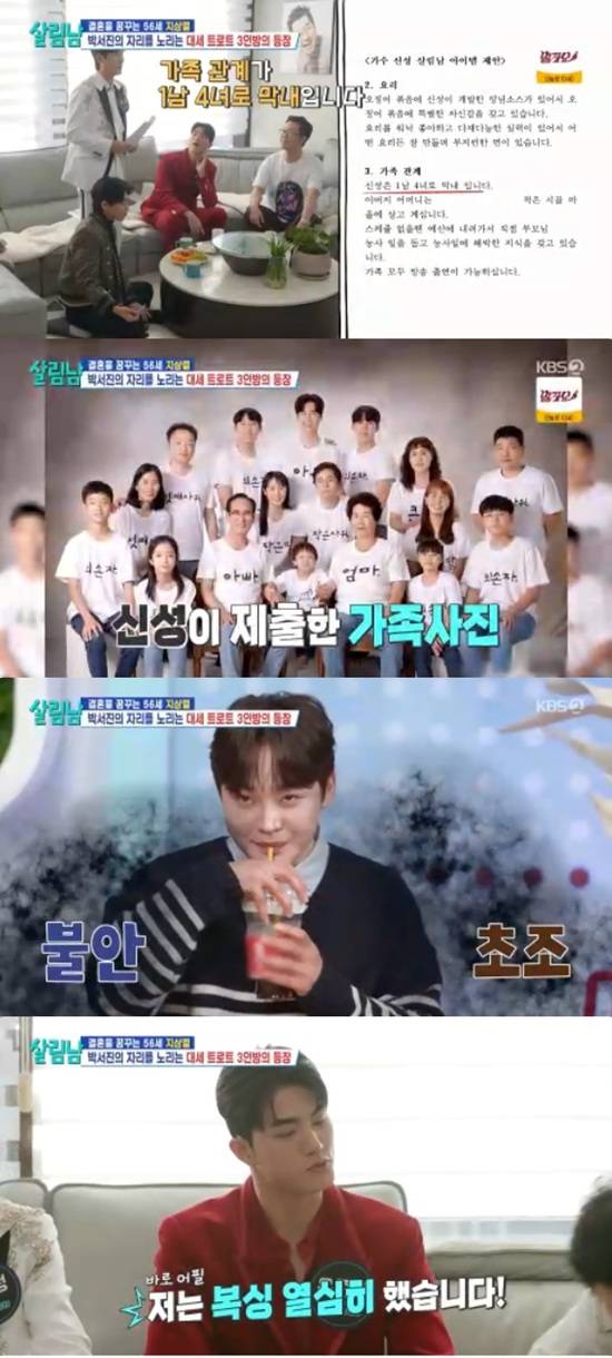 27일 방송된 KBS 2TV '살림하는 남자들 시즌2'에서는 신성이 고정 자리의 유력 후보로 떠오르며 박서진의 견제를 받는 모습이 전파를 탔다.