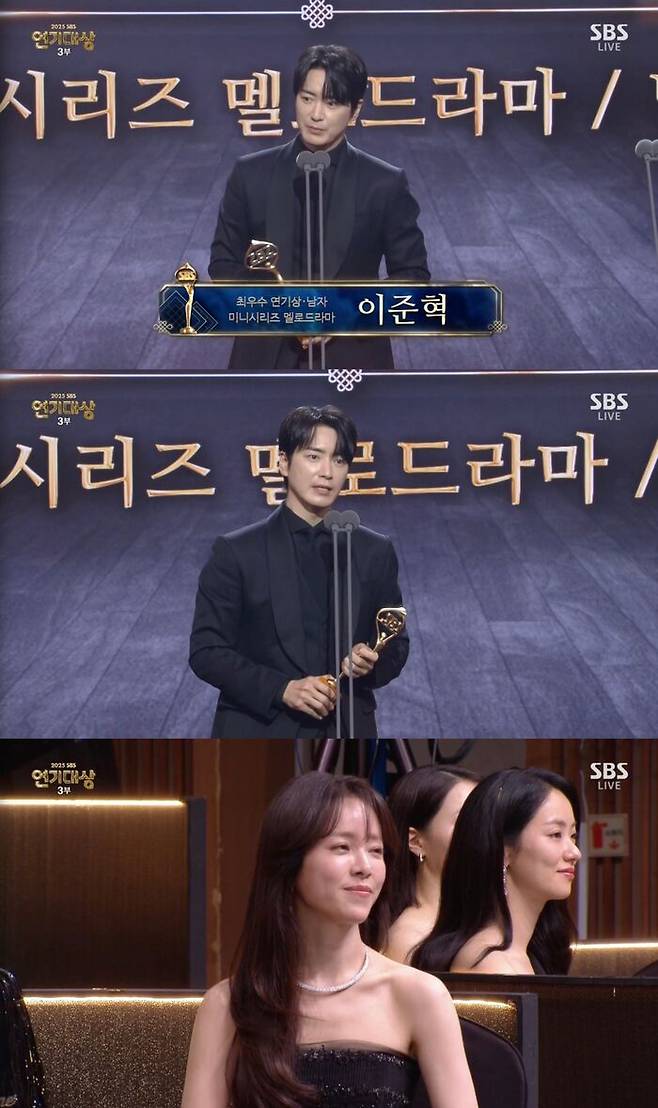 'SBS연기대상' 이준혁, '최우수 연기상' 수상…"나의 완벽한 지민 씨 감사해"