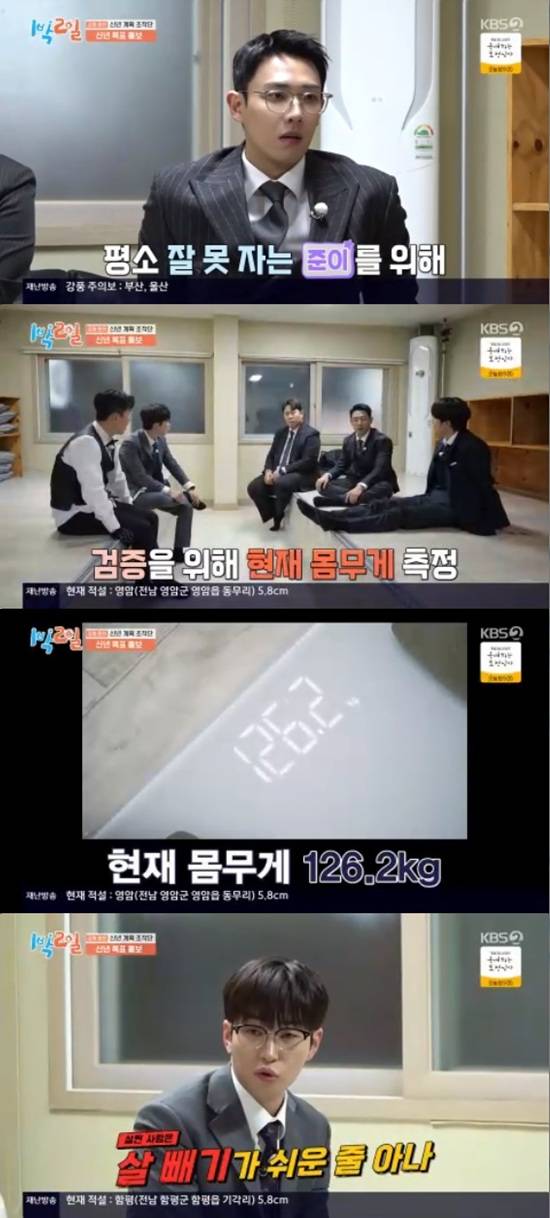 문세윤은 다이어트 목표를 검증하기 위해 현재 몸무게부터 측정, 126.2kg으로 나왔다.