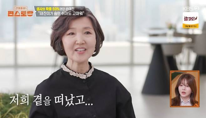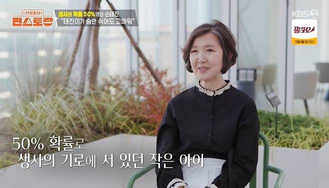 이후 손태진의 어머니는 아들을 위해 칠리크랩과 갈비찜을 만들었다. 해외 거주 중인 부모님은 한국살이 한 달 차지만, 아들이 바쁜 탓에 함께하는 시간이 별로 없었다고. 어머니는 "태민, 태진이 사이에 여자아이를 낳았는데, 3일째 되던 날 저희 곁을 떠났다. 그 후 태어난 아이가 태진이"라며 "태진이가 태어났을 땐 둘째보다 더 상태가 위험했다. 숨을 잘 못 쉬어서 의사 선생님이 생사 확률 50%라고 했다. 그래서 남편은 숨만 쉬어도 고맙다고 얘기했다"라고 털어놓았다.
