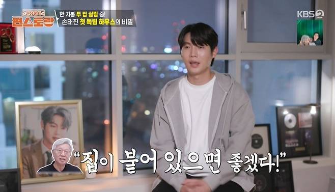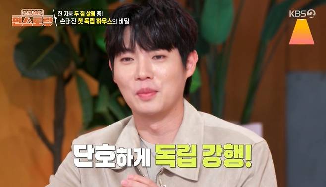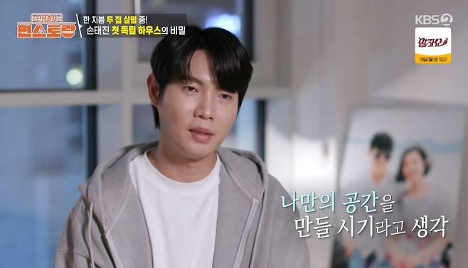 부모님과 한 건물 다른 층에 사는 손태진은 "제 공간을 만들어야 하는 시가기 온 것 같았다. 아버지가 '결혼하면 어차피 나가 살 텐데 왜 굳이 지금 나가냐'라고 서운해하셨다. 근데 이번엔 세게 나갔다"라며 "집이 붙어 있으면 좋겠다고 하셔서 그건 저도 양보할 수밖에 없었다. 내 공간이 생긴 것만으로도 너무 설렌다"라고 설명했다.