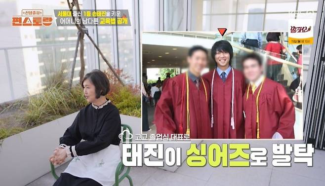 배고픈 손태진이 향한 곳은 다른 집으로, MC들은 "집을 두 개 샀냐. 두 집 살림 하는 거냐"고 놀랐다. 바로 부모님의 집이었다. 손태진 엄마는 "영어도 중요하지만, 중국어도 가르치고 싶어서 중국 학교를 보냈다. 그것도 중요하지만, 한국어도 알아야 하지 않을까 싶어서 (한국 학교를 보냈다)"라며 "'덥다, 춥다'란 단어도 상황에 맞지 않게 쓸 때도 있었다"라고 밝혔다.