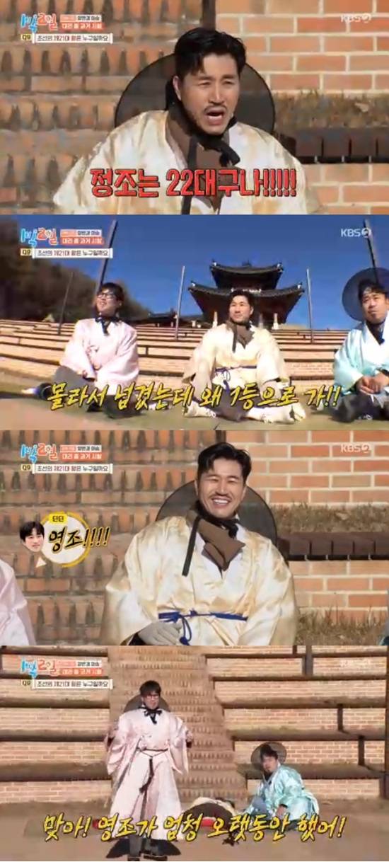 '역사킹' 김종민은 조선의 21대 왕이라는 문제를 듣고 자신있게 정조라고 외쳤다가 틀렸다는 사실에 당황했다.