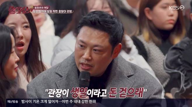 이날 '말자 할매' 김영희는 '믿었던 사람에게 배신당해 모든 걸 잃었습니다. 배신감에 지옥 같은 시간을 보내고 있습니다. 제가 다시 사람을 믿을 수 있을까요?'라는 사연을 받았다. 객석에는 반가운 얼굴 양치승 관장이 함께 했다.