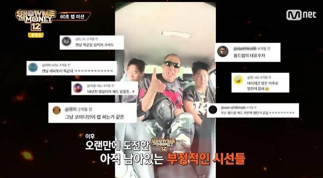 29일 방송된 Mnet 힙합 서바이벌 프로그램 'Show Me The Money 12'(쇼미더머니 12)에서는 단 60초 만에 탈락자가 결정되는 60초 랩 미션이 그려졌다.