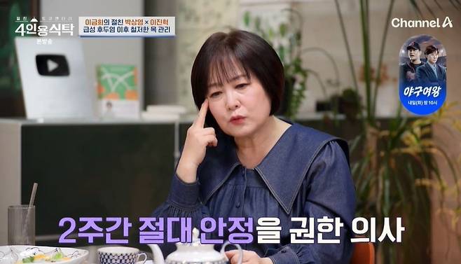 8일 방송된 채널A '절친 토큐멘터리-4인용 식탁'에서는 이금희가 이진혁, 박상영, MC 박경림을 초대했다.
