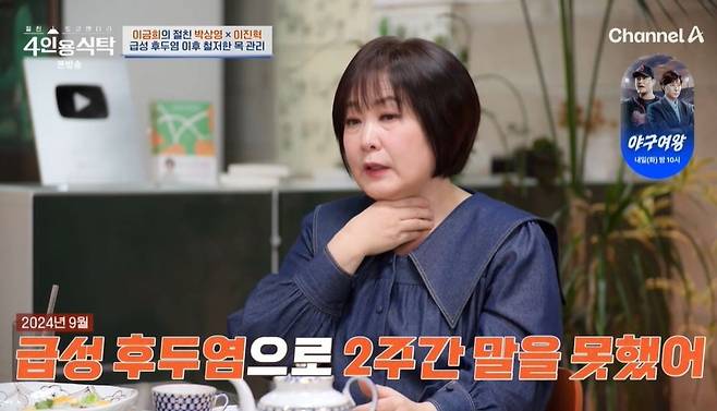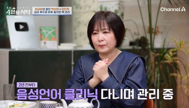박상영이 "목소리가 살림 밑천인데. 곳간이 거덜 난 기분이 들지 않았냐"라고 하자 이금희는 "겁은 나지 않았다. 선생님이 나을 거라고 하셨다. 여태 탈 없이 30년 쓴 거 감사한 줄 알고, 앞으론 잘 관리하라고 하셨다"라며 2년 전부터 음성언어 클리닉을 다니며 관리 중이라고 고백했다.