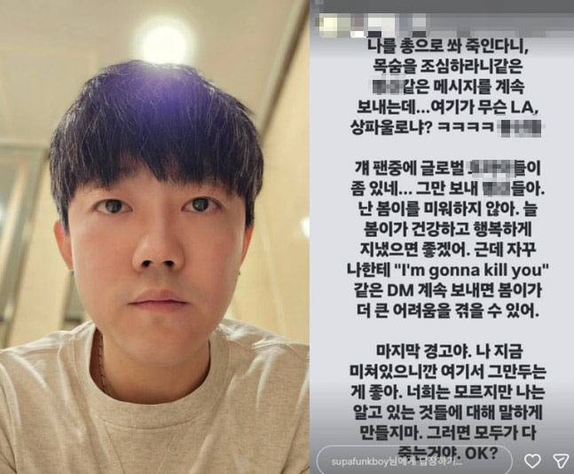 그는 이어 "그만 보내라. 난 박봄을 미워하지 않는다. 늘 봄이가 건강하고 행복하길 바란다"며 "하지만 나에게 'I'm gonna kill you' 같은 DM을 계속 보내면, 오히려 봄이가 더 큰 어려움을 겪게 될 수 있다"고 경고했다.