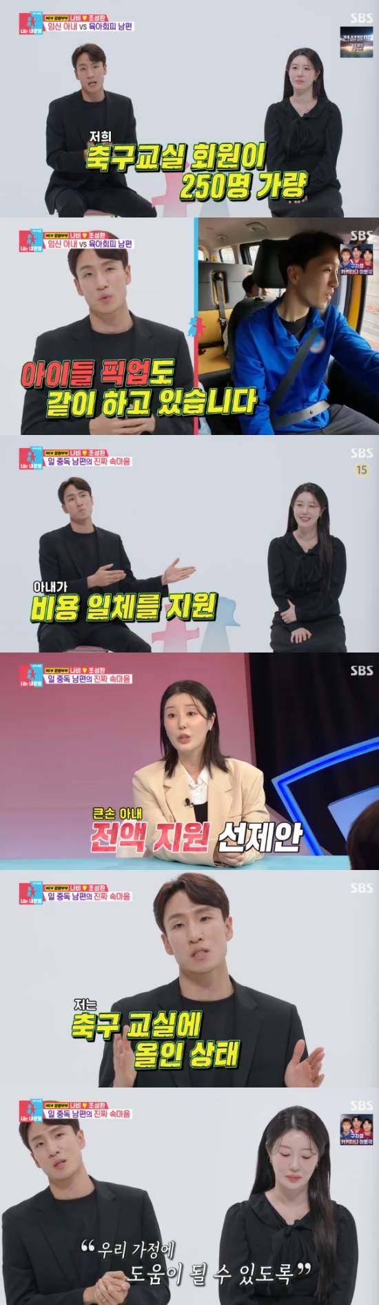 특히 이날 조성환은 축구교실 규모가 100평 정도 된다면서 "아내가 (축구교실 오픈) 비용 일체를 지원해줬다"고 고마워했고, 나비는 "남편이 얼마나 성실한 사람인지 아니까 제가 먼제 제안을 했다"고 말해 눈길을 끌었다.