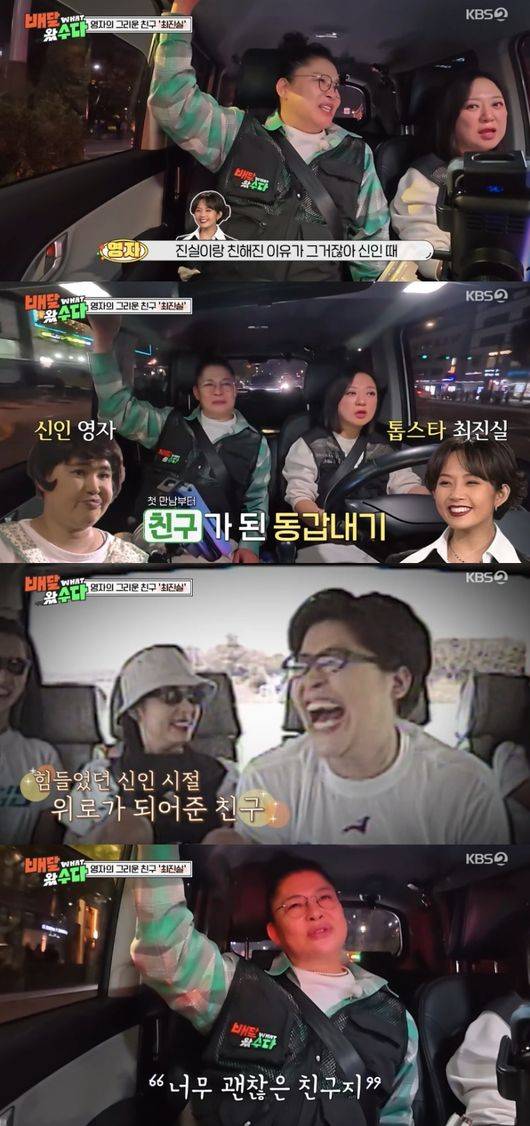 10일 방송된 KBS 2TV 예능 ‘배달왔수다’에서는 이영자와 김숙이 신인 시절을 회상하는 모습이 그려졌다.