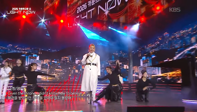 소향은 지난달 31일 서울 중구 명동에서 열린 KBS ‘2026 카운트다운 쇼 라이트 나우’에서 박혜원(HYNN), 영빈과 함께 넷플릭스 ‘케이팝 데몬 헌터스’ OST ‘골든’을 열창했다.