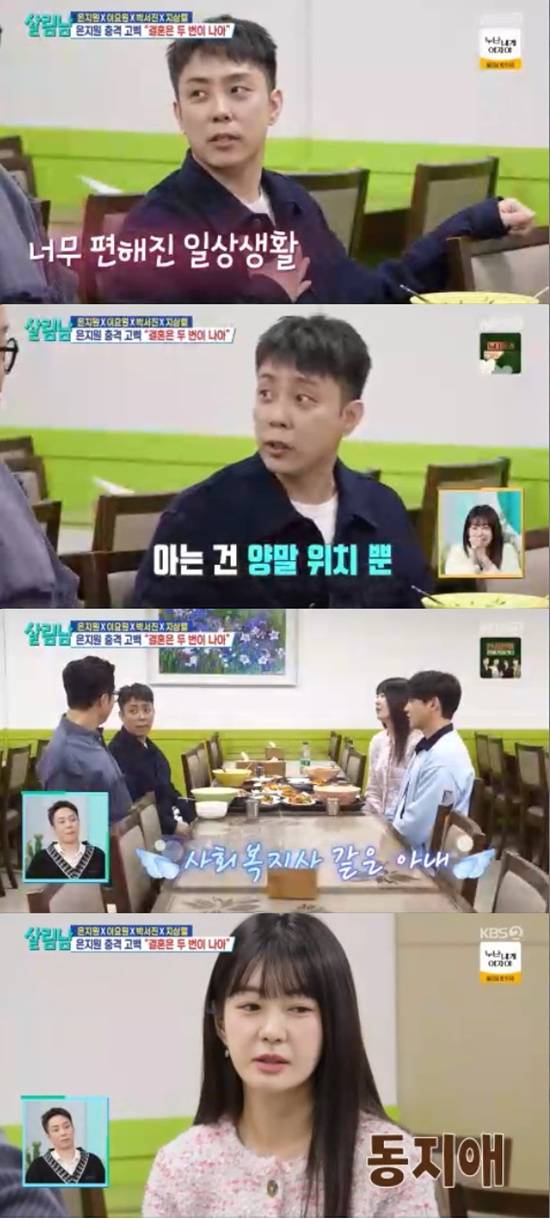 은지원은 집에서 양말 위치밖에 모른다며 아내에 대해 "사회복지사 같다"고 말했다. 은지원은 스튜디오에서 자신의 얘기를 듣고 "주접 떨고 앉아 있었네"라고 후회했다.