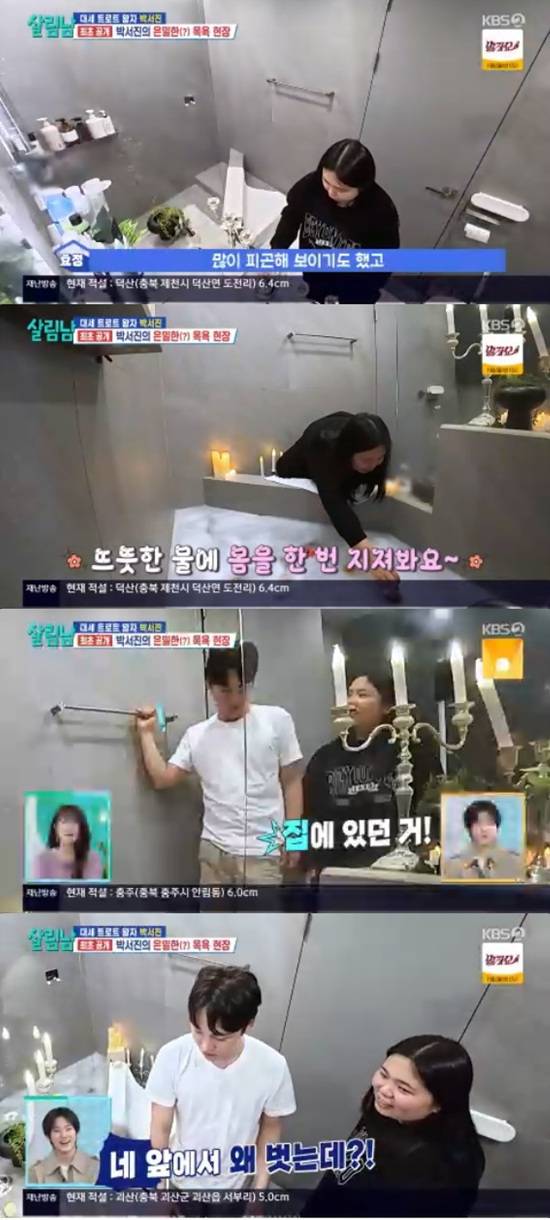 박효정은 박서진을 위해 거품 목욕을 할 수 있도록 욕실을 꾸미기 시작했다. 욕실에 들어선 박서진은 "집 치우기 힘들게 해놨네"라고 투덜거렸다.